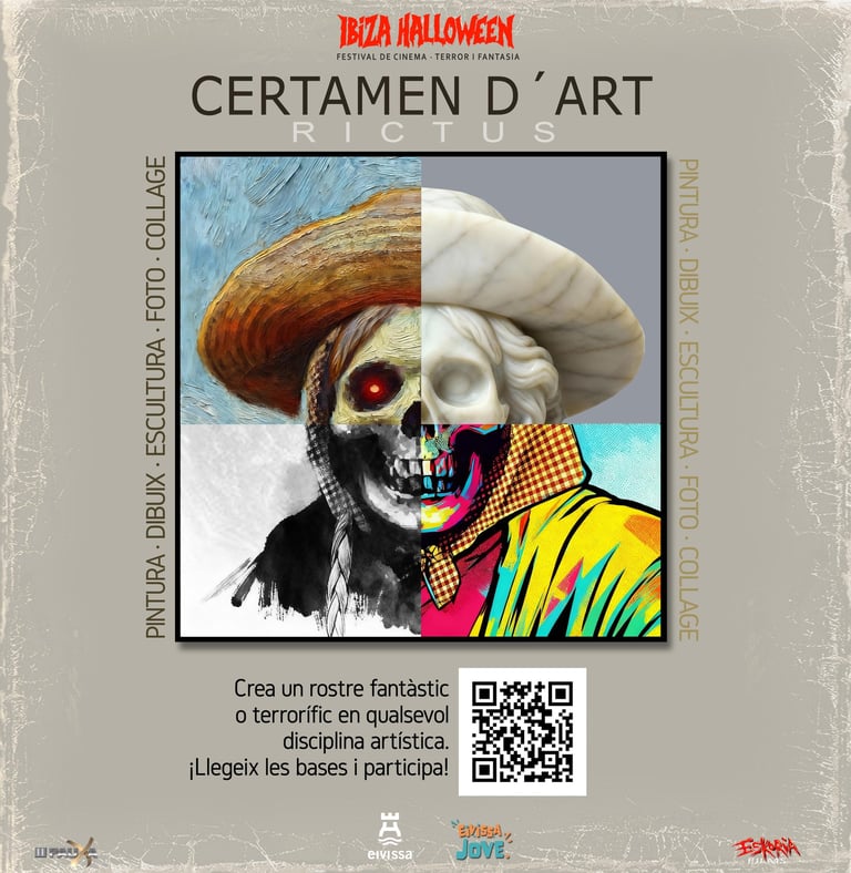 Ibiza Halloween junto al Ayuntamiento de Ibiza y el Centro Joven C19 organiza "RICTUS · Rostros de Terror y Fantásticos". Un certamen de artes plásticas en la que buscamos rostros expresivos del mundo Fantaterrorífico.