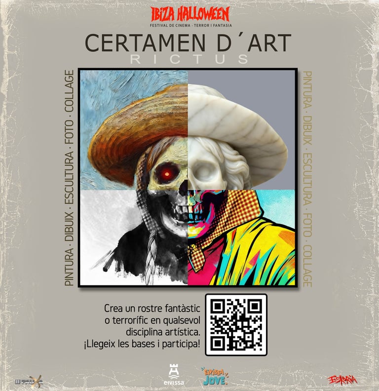 Ibiza Halloween junto al Ayuntamiento de Ibiza y el Centro Joven C19 organiza "RICTUS · Rostros de Terror y Fantásticos". Un certamen de artes plásticas en la que buscamos rostros expresivos del mundo Fantaterrorífico.